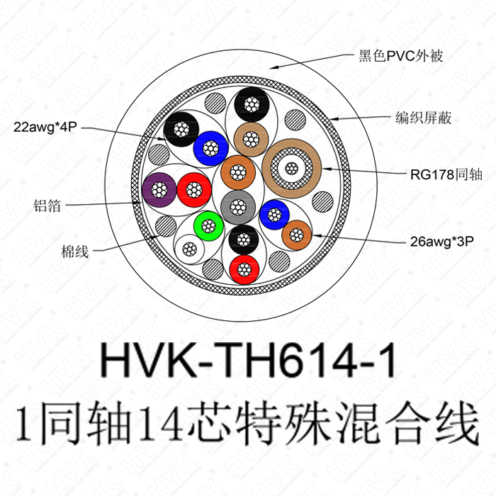 1同軸14芯特殊線 仿硅膠黑色